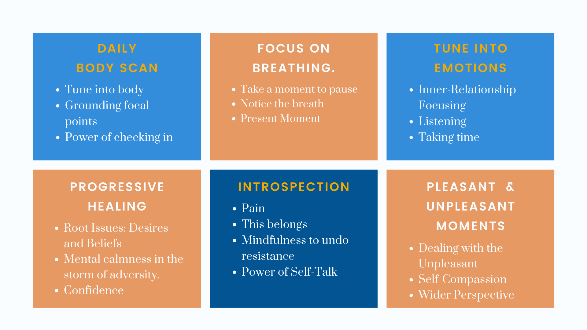 1. Enhancing inner-awareness of thoughts, emotions, and behaviors.